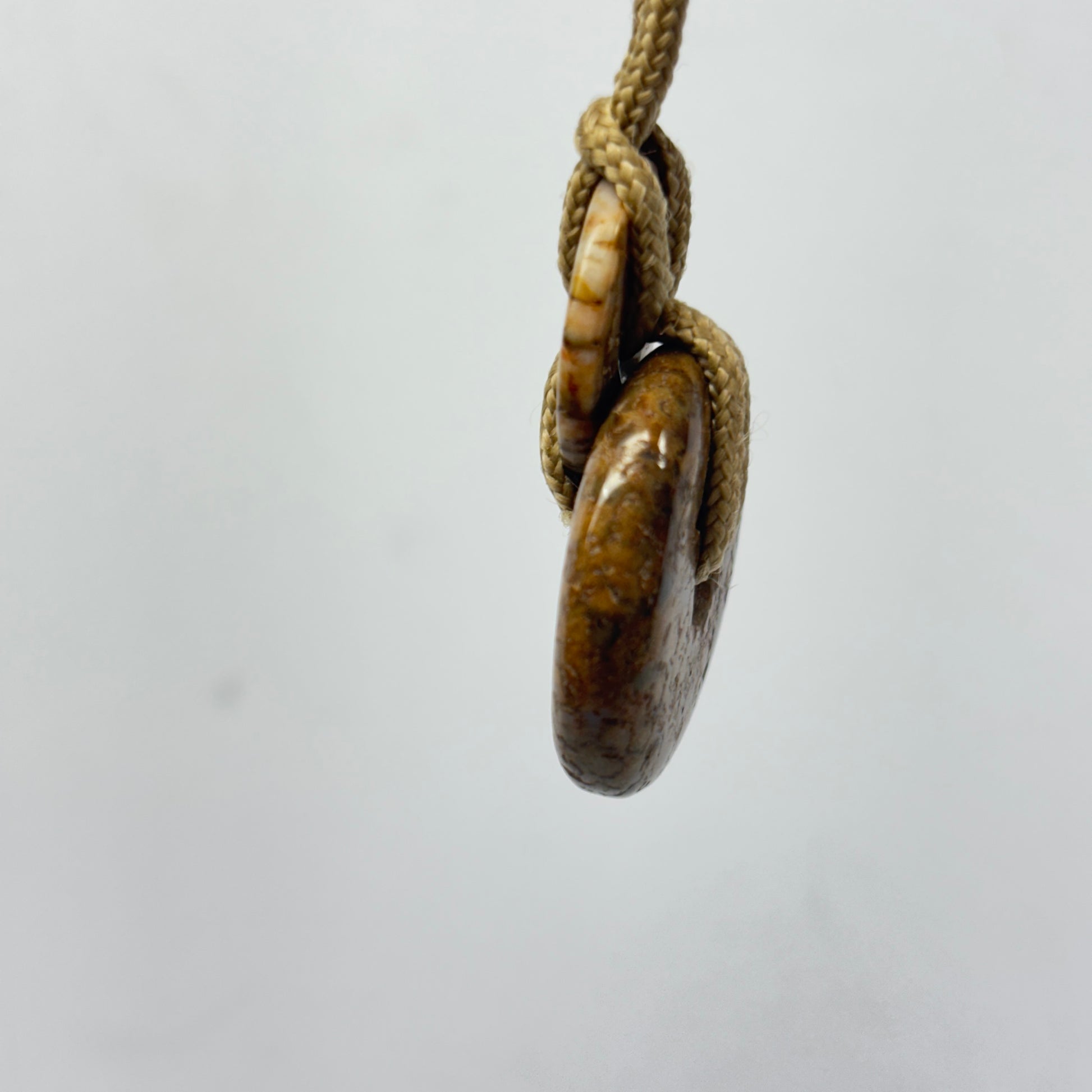 This pendant showcases a piece of genuine petrified dinosaur bone, a remarkable relic of the distant past. Formed over millions of years, the bone underwent a fascinating process of fossilization, where organic materials were replaced by minerals, turning it into a stunning, colorful stone. Wearing this pendant connects you to ancient history, reminding you of the earth's incredible transformations and the resilience of life through time.