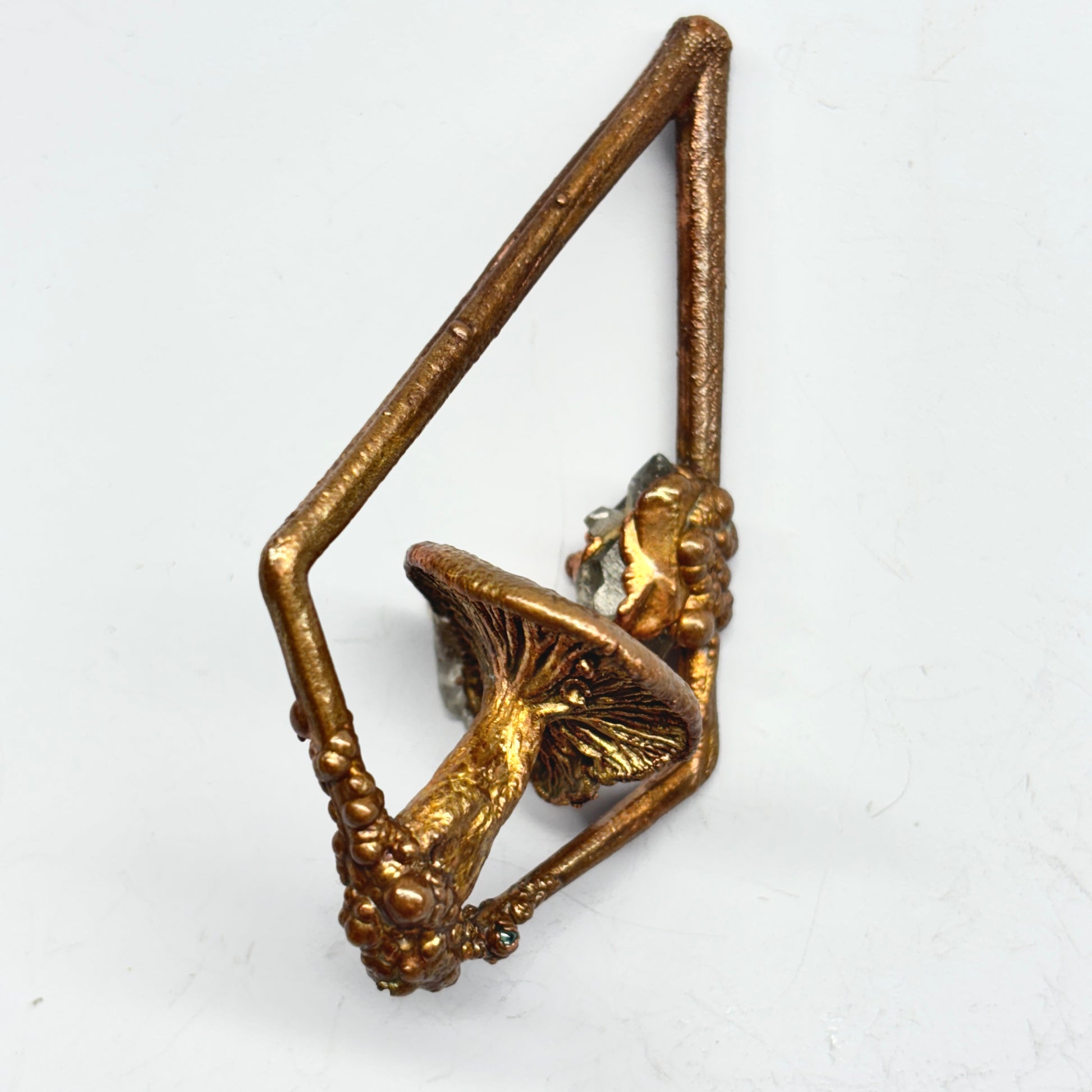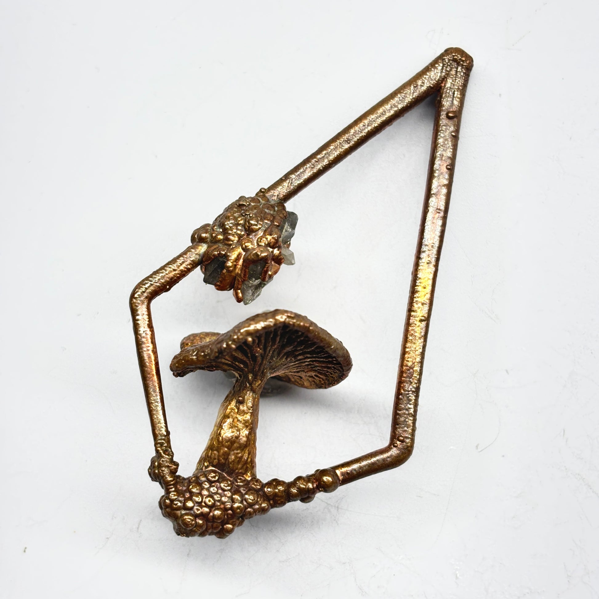 This wearable treasure began it's life in the forest, made with real mushrooms, lovingly foraged in the PNW and preserved before being transformed through the magic of electroforming. Layer by layer, durable copper forms around each one, capturing every delicate detail to ensure they stand the test of time. The result? A wearable piece of woodland magic—equal parts nature and alchemy, with a rustic, earthy charm.