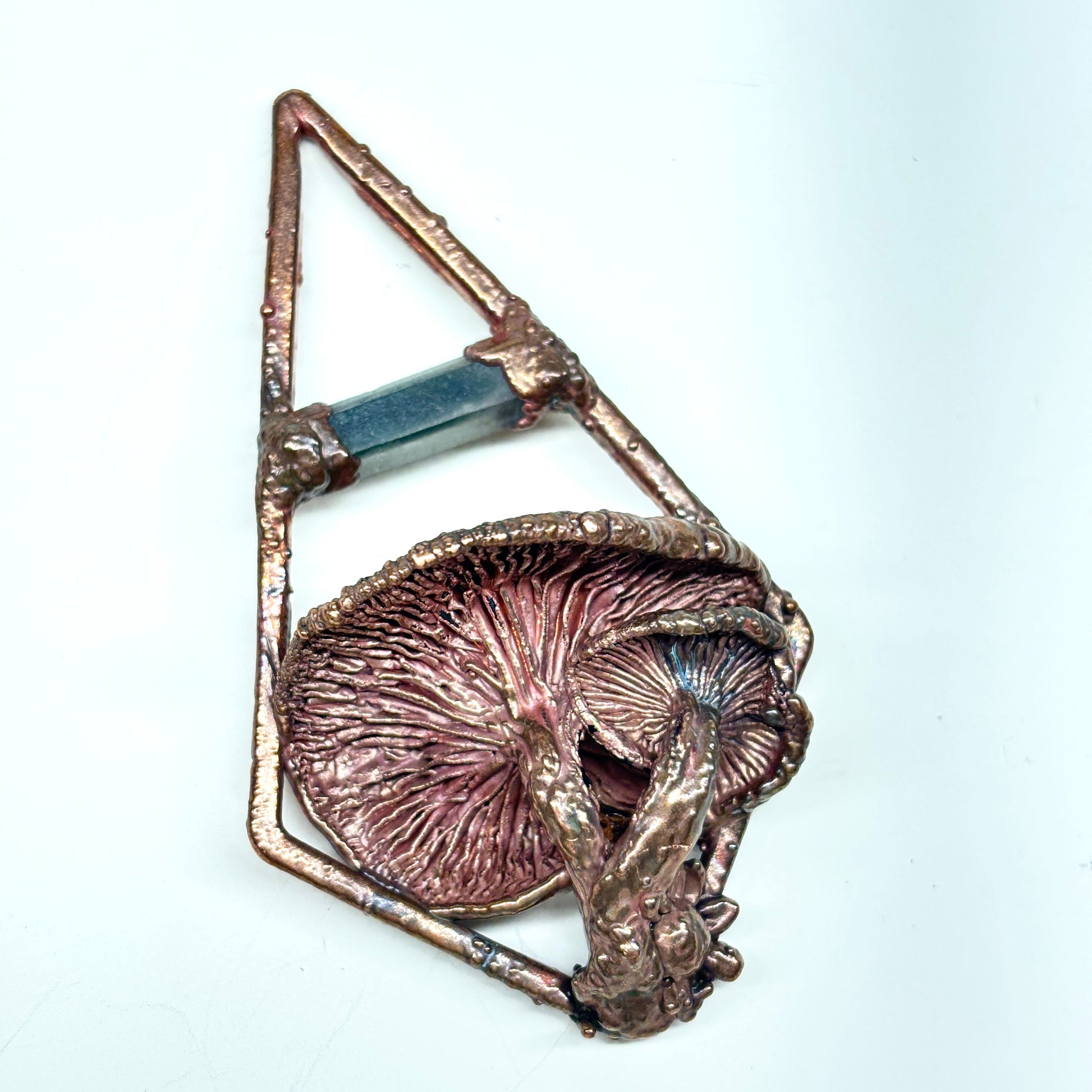 Real Mushroom Pendant with Candy Cap and Phantom Quartz