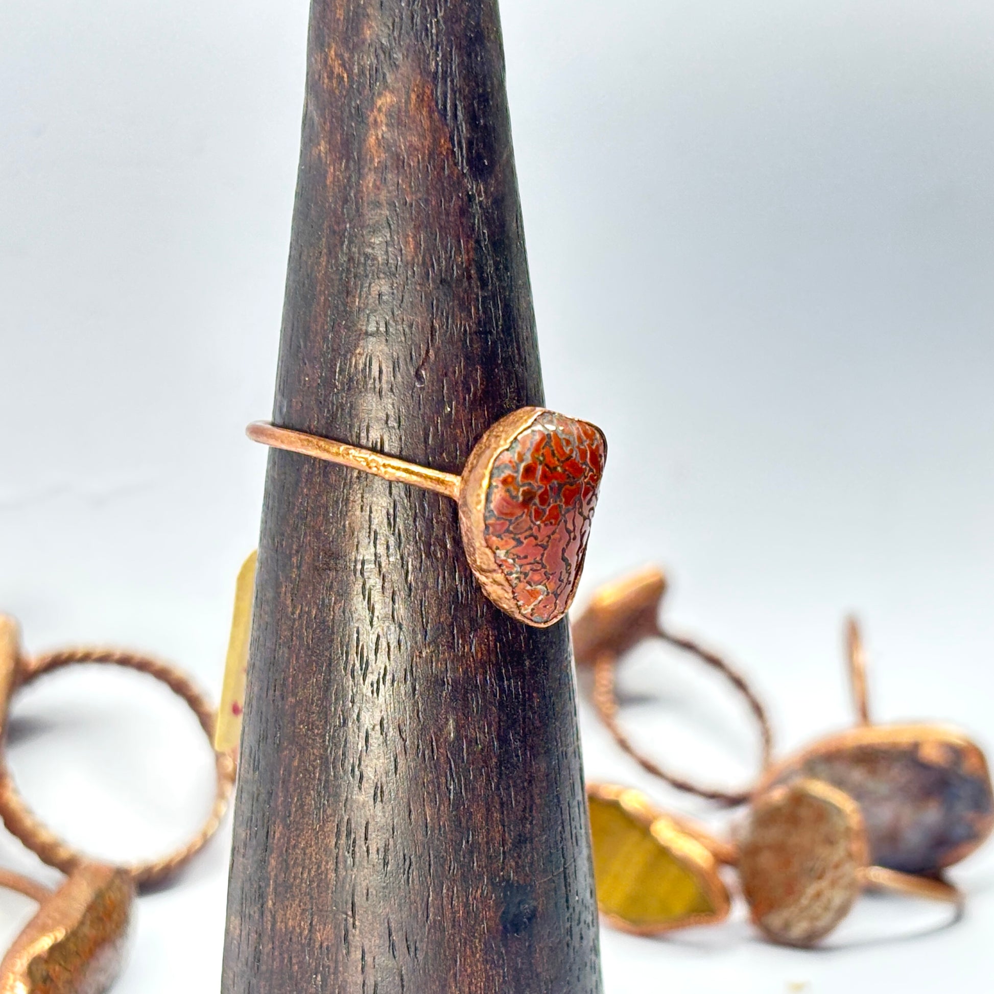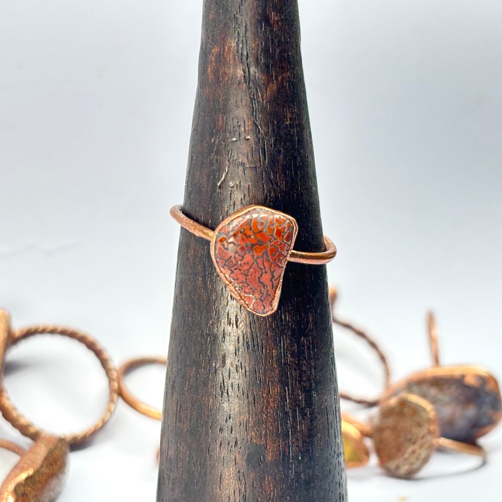 Size 10 Red Dinosaur Bone Copper Electroformed Ring
