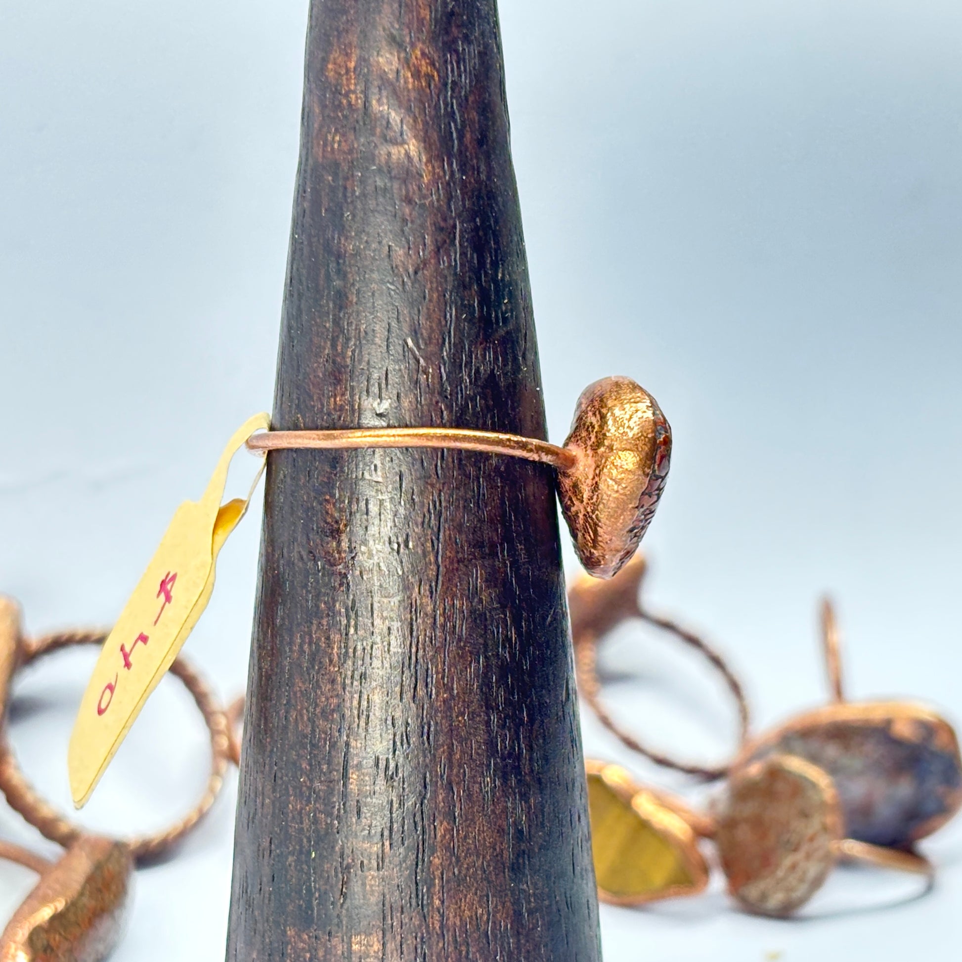 Our copper rings are truly unique, showcasing a wide array of materials, many of which are locally sourced in the PNW. Each piece is crafted using an electroforming technique that allows the copper to grow organically around the stone, creating natural-looking forms that are as distinctive as the wearer. These whimsical yet classy rings are perfect for everyday wear, adding a touch of nature-inspired elegance to any outfit.