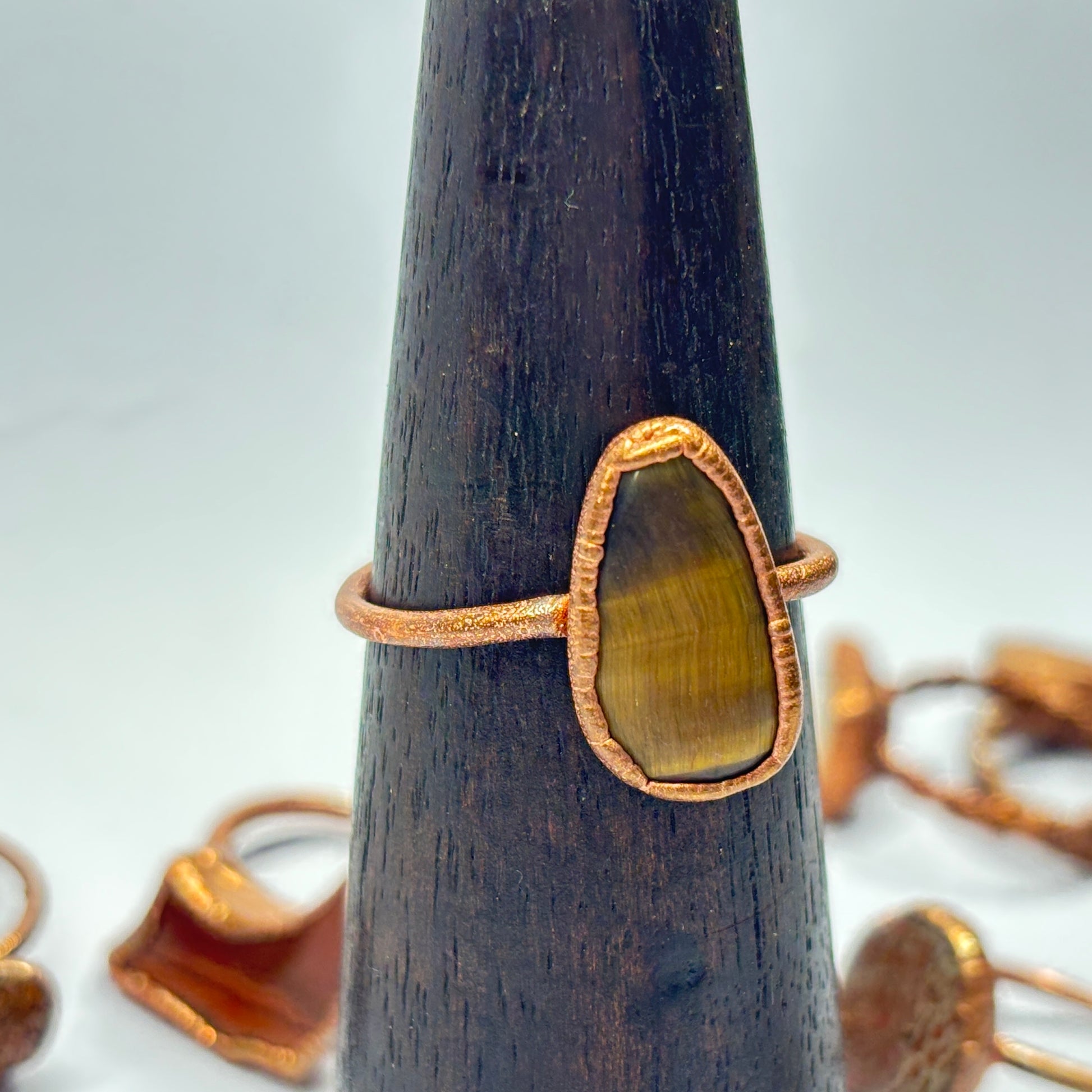 Size 12 1/4 Gorgeous Tiger's Eye Copper Electroformed Ring