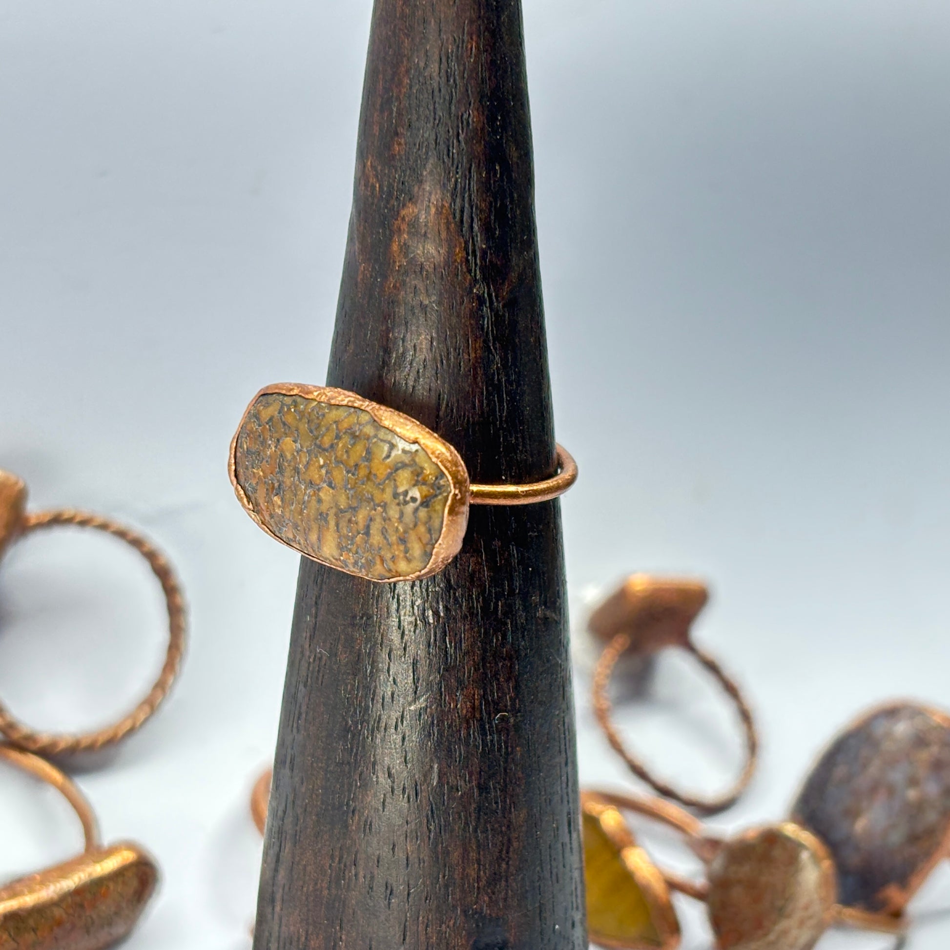 Size 7 1/2 Yellow Dinosaur Bone Copper Electroformed Ring