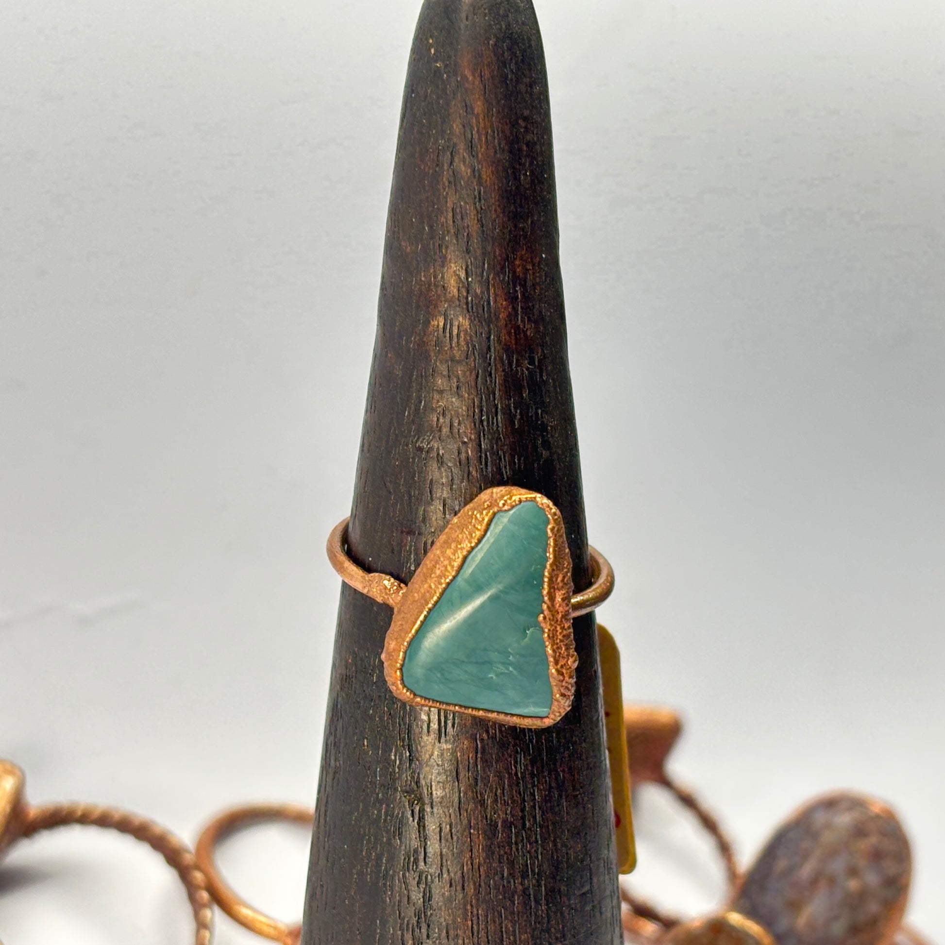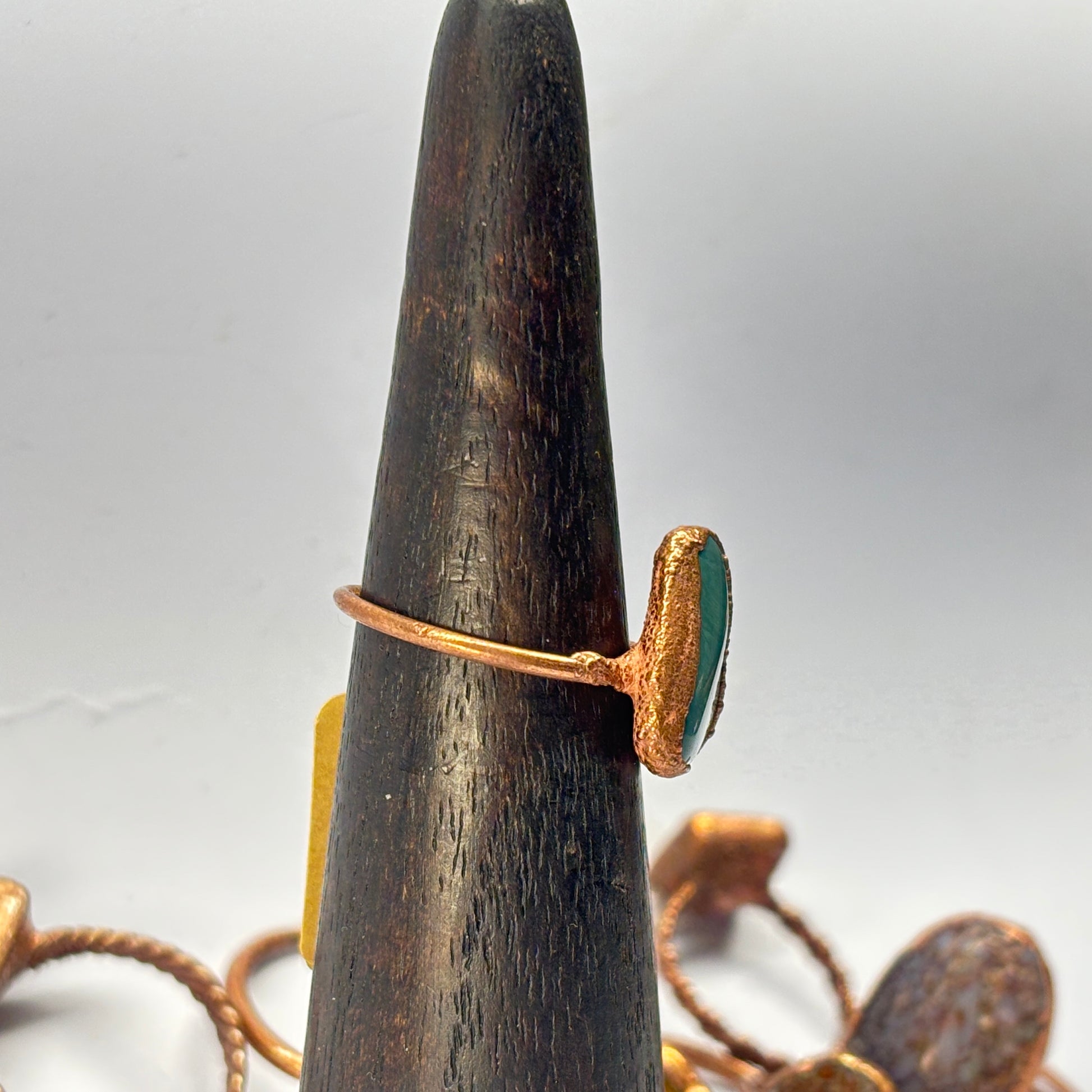 Our copper rings are truly unique, showcasing a wide array of materials, many of which are locally sourced in the PNW. Each piece is crafted using an electroforming technique that allows the copper to grow organically around the stone, creating natural-looking forms that are as distinctive as the wearer. These whimsical yet classy rings are perfect for everyday wear, adding a touch of nature-inspired elegance to any outfit.