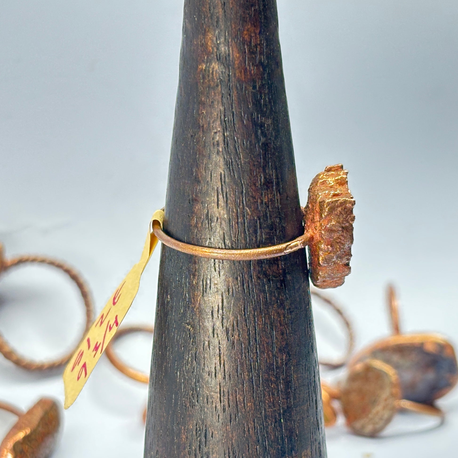 Our copper rings are truly unique, showcasing a wide array of materials, many of which are locally sourced in the PNW. Each piece is crafted using an electroforming technique that allows the copper to grow organically around the stone, creating natural-looking forms that are as distinctive as the wearer. These whimsical yet classy rings are perfect for everyday wear, adding a touch of nature-inspired elegance to any outfit.