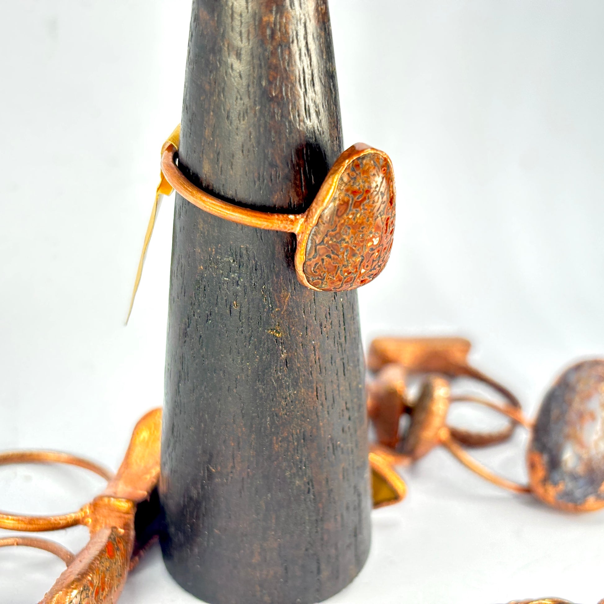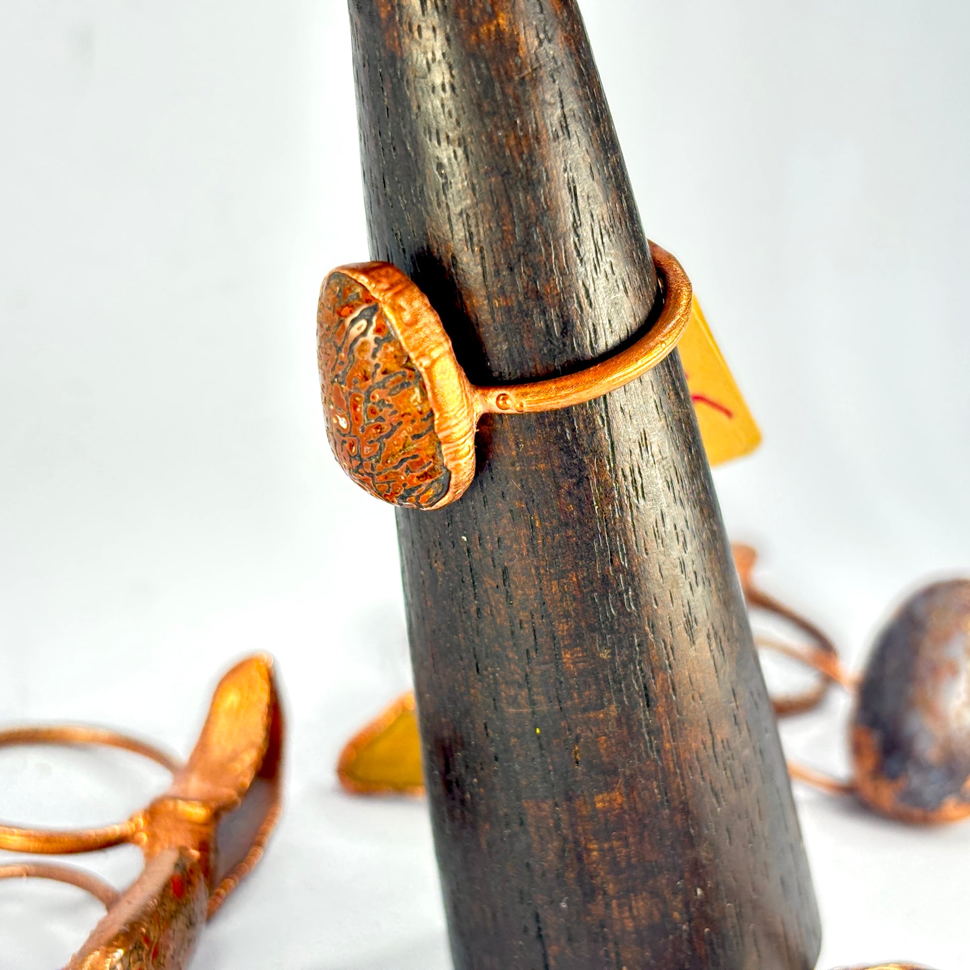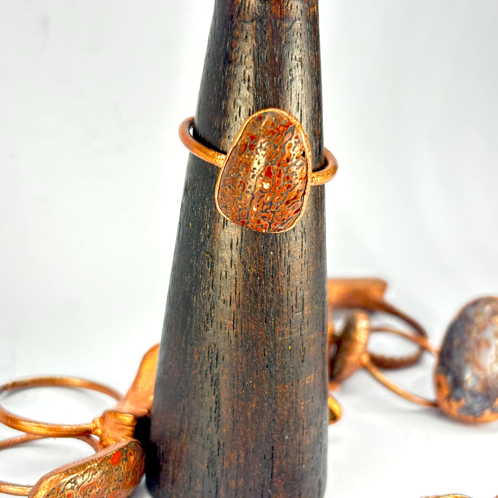 Size 9 Red Dinosaur Bone Copper Electroformed Ring